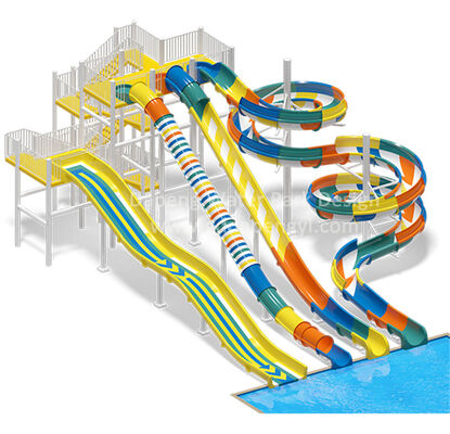مواصفات معدات حديقة مائية لحمام السباحة من الألياف الزجاجية منزلقة احترافية لحمام السباحة